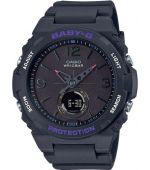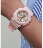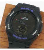 Женская и детская линейка наручных часов Baby-G была создана на основе противоударной серии часов G-Shock. Выпустив часы, которые могут выдержать все, компания Casio позаботилась о том, что бы каждая девушка, женщина и ребенок могли заниматься своими любимыми видами спорта, плавать, вести активный образ жизни. Они имеют прочный полимерный корпус, надежно защищающий часовой механизм от падений и ударов, а также других внешних воздействий, таких как попадания грязи и влаги. Так же как и «старшие братья», часы Baby-G имеют ряд функций, как будильник, таймер, секундомер, подсветка, а также другие, более сложные функции. Часы коллекции Baby-G имеют высокий уровень водозащиты, позволяющий принимать душ, плавать в бассейне, заниматься водными видами спорта, не снимая часы. Единственными отличиями от легендарных «Шоков», является дизайн часов и их размеры. Baby-G создавались очень продуманно, была учтена каждая деталь. Они хорошо смотрятся даже на самой тонкой руке, и, немаловажно, что идеально подходят по размеру даже детям.