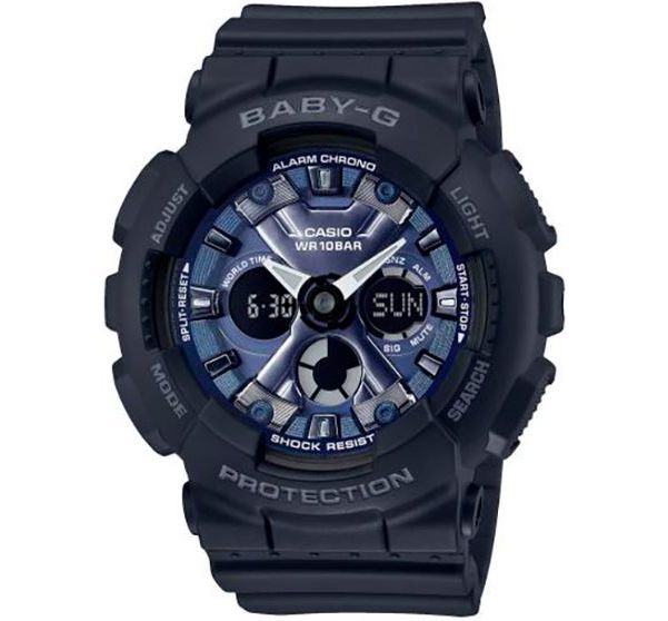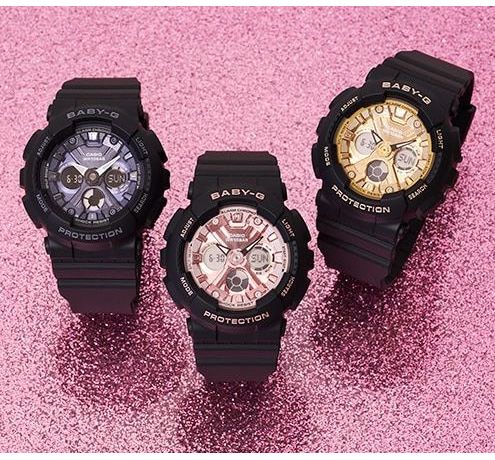 BABY-G SERIES Аналог более крупных G-SHOCK SERIES. Модные современные спортивные часы, отлично сочетаются с любым стилем одежды. Неприхотливые к возрастным ограничениям. Подойдут всем девушкам без исключения. Идеально ложатся на утонченное женское запястье. Универсальность и практичность данной модели ощущается буквально во всем. Легкие, всего 45 грамм. Корпус и ремешок из полимерного гипоаллергенного материала. Ударопрочное минеральное стекло. Светодиодная подсветка, стрелки светятся в темноте. На циферблате есть дополнительные дисплеи. На них отображается месяц, число и день недели либо время в цифровом формате, а также на них выводятся дополнительные функции. По бокам четыре кнопки для управления, настройки и подсветки. Можно включать секундомер на 24 часа, таймер обратного отсчета до 24 часов и будильник. Батарейки хватает от 2 до 5 лет. Водонепроницаемость 100 метров, можно нырять, плавать не снимая с руки. Гарантия 2 года. Размер 46 мм на 43 мм, толщина 16 мм. Часы можно заказать с другим ремешком и расцветкой циферблата. Для этого в строке поиска нужно ввести название модели без окончания, BA-130