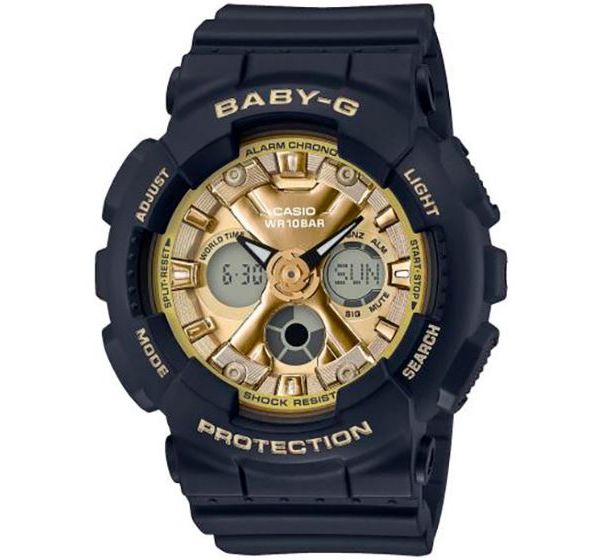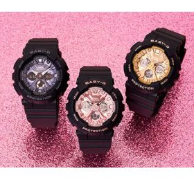 BABY-G SERIES Аналог более крупных G-SHOCK SERIES. Модные современные спортивные часы, отлично сочетаются с любым стилем одежды. Неприхотливые к возрастным ограничениям. Подойдут всем девушкам без исключения. Идеально ложатся на утонченное женское запястье. Универсальность и практичность данной модели ощущается буквально во всем. Легкие, всего 45 грамм. Корпус и ремешок из полимерного гипоаллергенного материала. Ударопрочное минеральное стекло. Светодиодная подсветка, стрелки светятся в темноте. На циферблате есть дополнительные дисплеи. На них отображается месяц, число и день недели либо время в цифровом формате, а также на них выводятся дополнительные функции. По бокам четыре кнопки для управления, настройки и подсветки. Можно включать секундомер на 24 часа, таймер обратного отсчета до 24 часов и будильник. Батарейки хватает от 2 до 5 лет. Водонепроницаемость 100 метров, можно нырять, плавать не снимая с руки. Гарантия 2 года. Размер 46 мм на 43 мм, толщина 16 мм. Часы можно заказать с другим ремешком и расцветкой циферблата. Для этого в строке поиска нужно ввести название модели без окончания, BA-130