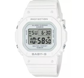G-SHOСK SERIES Коллекция спортивных женских часов CASIO. Уменьшена версия стандартных моделей. Противоударные, многофункциональные, компактные часы. Идеально подойдут девушкам, которые идут в ногу со временем, чья жизнь не стоит на месте, а мода и стиль стали ее неотъемлемой частью. Ремешок и корпус из полимерных материалов. Застёжка и задняя крышка из нержавеющей стали. Прочное минеральное стекло надежно защищает часы от повреждений. Кнопки утоплены в корпус по две с каждой стороны. Подсветка светодиодная. Цифровой циферблат показывает время в цифровом формате число, месяц, день недели и отсчет секунд. Еще можно включать секундомер, таймер обратного отсчета, воспользоваться пятью будильниками. Подсветка светодиодная, активируется кнопкой. Элемента питания хватает от 2 до 5 лет. Оснащены вечным календарем. Обладают невероятной водонепроницаемостью до 100 метров. Часы можно заказать с другим ремешком и окраской циферблата. Для этого в строке поиска нужно ввести название модели без окончания, BGD-565