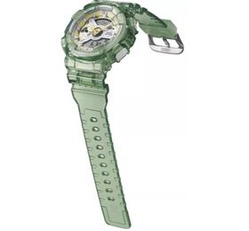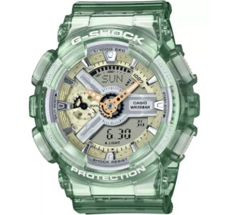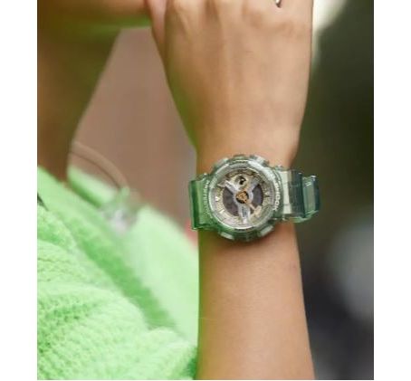 G-SHOСK SERIES Коллекция спортивных женских часов CASIO. Уменьшена версия стандартных моделей. Противоударные, многофункциональные, компактные часы. Идеально подойдут девушкам, которые идут в ногу со временем, чья жизнь не стоит на месте, а мода и стиль стали ее неотъемлемой частью. Ремешок и корпус из полимерных материалов. Застёжка и задняя крышка из нержавеющей стали. Прочное минеральное стекло надежно защищает часы от повреждений. Кнопки утоплены в корпус по две с каждой стороны. Подсветка светодиодная. Стрелки полые. Два цифровых дисплея показывают время в цифровом формате или число, месяц, день недели и отсчет секунд на выбор. Еще можно включать секундомер, таймер обратного отсчета, менять часовые пояса, воспользоваться пятью будильниками. Подсветка светодиодная, автоматически активируется при повороте часов на себя или кнопкой. Элемента питания хватает от 2 до 5 лет. Оснащены вечным календарем. Обладают невероятной водонепроницаемостью до 100 метров. Часы можно заказать с другим ремешком и окраской циферблата. Для этого в строке поиска нужно ввести название модели без окончания, GMA-S110