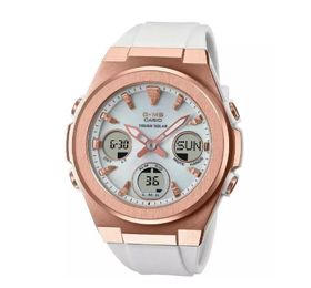 Багатофункціональний спортивний аксесуар який можна легко носити і під легке квіткове плаття, і під сорочку, і під спортивний костюм. CASIO MSG-S600G-7AER виглядають стримано, при цьому володіє надійним корпусом, і великим обсягом функцій. Однією з найважливіших фішок цієї моделі годинників - це сонячна батарея, яка заряджається через панель дисплея, і буде довго вам служити і забезпечувати безперебійну роботу вашого улюбленого аксесуара. Корпус зроблений з високоякісної сталі і міцного і легкого полімерного матеріалу, зі спеціальним покриттям кольору рожеве золото. Ремінець білий, теж зроблений з якісного полімерного матеріалу, що відрізняється гнучкістю і міцністю. Особливе загартоване мінеральне скло, з високою стійкістю до подряпин, надійно захищає циферблат. Час аналого-цифровий. На циферблаті розташовані 3 додаткових РК дисплеїв. Підсвічування світлодіодне надяскраве, також на стрілках нанесено додаткове світлонакопичувальне покриття. Функції: