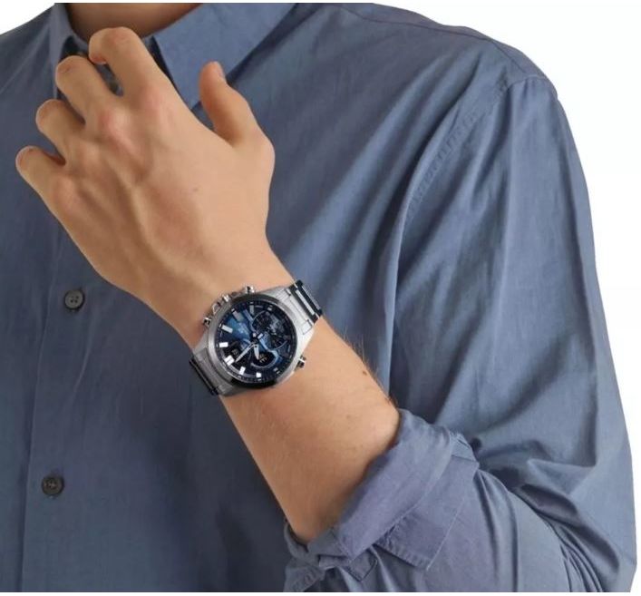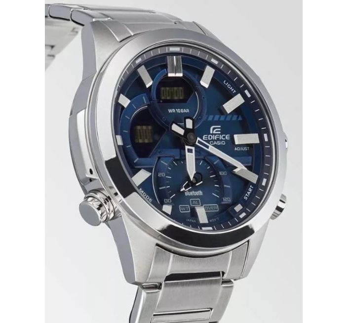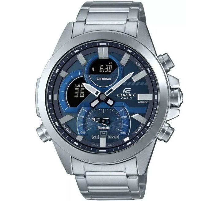 EDIFIСE премиальная линейка японских часов Casio. Стильный многофункциональный аксесуар, сочетающейся практически с любым гардеробом. Часы идеально подходят для активных людей чия жизнь не стоит на месте. С помощью Bluetooth вы можете подключить часы к смартфону и получить доступ к целому ряду полезных функций через приложение G-Shock Connected. Настройка времени, выводятся на смартфон. В часах есть. Секундомер, с возможностью сохранения данных, таймер, пять будильников, мировое время, смена часовых поясов, функция поиска телефона, при нажатии кнопки на часах смартфон подает звуковой сигнал. Подсветка LED. Циферблат цифровой, защищен противоударным минеральным стеклом. Корпус и браслет нержавеющая сталь. Календарь автоматически настраивается по Bluetoothю. Элемента питания хватает от 2 до 5 лет.Размер 52 мм на 48 мм, толщина 13 мм. Водонепроницаемость 100 метров. Часы можно заказать с другим ремешком и расцветкой циферблата. Для этого в строке поиска нужно ввести название модели без окончания, ECB-30