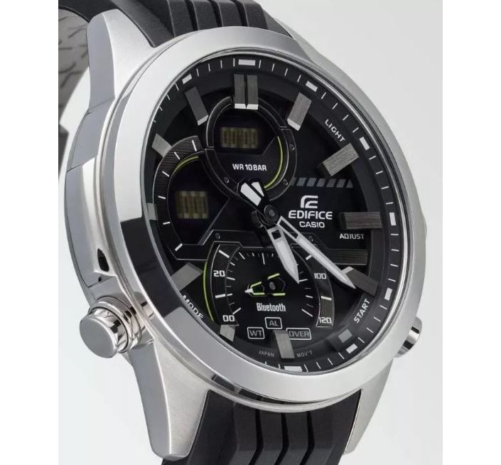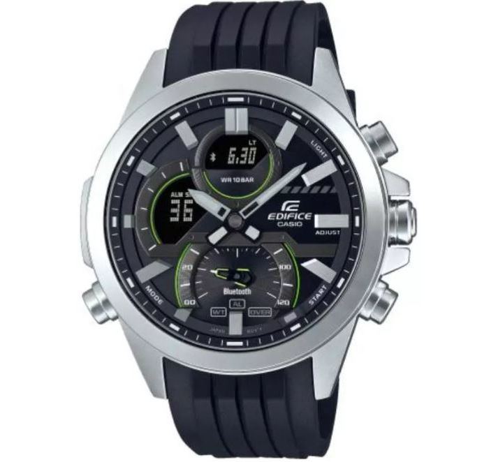EDIFIСE премиальная линейка японских часов Casio. Стильный многофункциональный аксесуар, сочетающейся практически с любым гардеробом. Часы идеально подходят для активных людей чия жизнь не стоит на месте. С помощью Bluetooth вы можете подключить часы к смартфону и получить доступ к целому ряду полезных функций через приложение G-Shock Connected. Настройка времени, выводятся на смартфон. В часах есть. Секундомер, с возможностью сохранения данных, таймер, пять будильников, мировое время, смена часовых поясов, функция поиска телефона, при нажатии кнопки на часах смартфон подает звуковой сигнал. Подсветка LED. Циферблат цифровой, защищен противоударным минеральным стеклом. Корпус нержавеющая сталь, ремешок из полимера. Календарь автоматически настраивается по Bluetoothю. Элемента питания хватает от 2 до 5 лет.Размер 52 мм на 48 мм, толщина 13 мм. Водонепроницаемость 100 метров. Часы можно заказать с другим ремешком и расцветкой циферблата. Для этого в строке поиска нужно ввести название модели без окончания, ECB-30