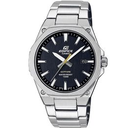 EFR-S108D-1AVUEF часы из спортивной коллекции Edifice, созданы в классическом оформлении дизайна. Такие часы будут идеальным выбором для городского или спортивного стиля. Многоугольный матовый стальной безель. Аккуратный полуматовый корпус из нержавеющей стали. Также, полуматовый стальной браслет, с застежкой с тройным сгибом. Циферблат надежно защищен сапфировым стеклом. На аналоговом черном циферблате расположены индексы, часовая стрелка, минутная стрелка, и желтая секундная стрелка, а также окошко актуальной даты. На индексы и стрелки нанесено специальное светонакопительное покрытие. Водостойкость до 10 бар. Примерный срок службы батареи 3 года. Размеры часов 44.8мм x 39.9мм x 7.8мм, вес 110г.