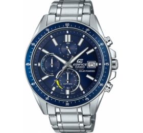 Эти часы с крупным диаметром корпуса который составляет 46 мм. В него помещён механизм с элементом питания, заряжающегося от любого источника света. Вес составляет 159 грамм, а все из-за крупного корпуса и браслета. Браслет выполнен из литых стальных звеньев, застежка имеет предохранитель от случайного открытия.Циферблат закрыт сапфировым стеклом Механизм загерметизирован в корпусе и имеет показатели 10 бар. Модель достаточно функциональна, имеет хронограф, индикатор заряда батареи и дата. Прекрасный аксессуар для личного пользования. Он сочетает в себе спорт и элегантность.