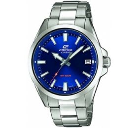Casi Edifice EFV-100D-2AVUEF-это высококачественные базовые часы от Casio. Часы оснащены стальным браслетом. Аналоговая индикация времени легко сочетается с любым нарядом. Хорошо читаема, метки на циферблате имеют светящийся состав. Водозащита 100 метров позволит купаться в часах. Стекло минеральное, оно прочное и хорошо защищает циферблат от повреждений.