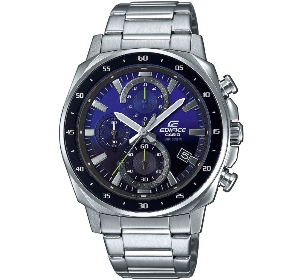 Мужские спортивные часы CASIO EFV-600D-2AVUEF станут вашим любимым аксессуаром, благодаря своему необычному дизайну и высокому качеству. Яркий циферблат с синим градиентом цвета — эффект градиента цвета часто используется в раскраске спортивных машин. Безель с черным IP покрытием, и минутной шкалой. Массивный корпус из полированной нержавеющей стали. Индексы на аналоговом дисплее тоже полированные. Завинчивающиеся задняя крышка. Рифленая заводная головка, с боковой защитой. Минеральное стекло — устойчивое к случайным ударам и царапинам. Браслет из нержавеющей стали с матовой отделкой и полированными деталями. Безопасная застежка с тройным сгибом. На аналоговом дисплее установлены — окошко даты, секундомер до 1 часа с точностью 1/10 сек. Люминесцентные стрелки и часовые метки. Водонепроницаемость до 10 бар. Механизм кварцевый. Точность хода +/-20 секунд в месяц. Размеры 49 x 43.8 x 11.1мм, вес 135г.