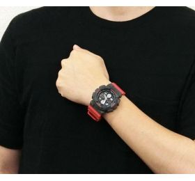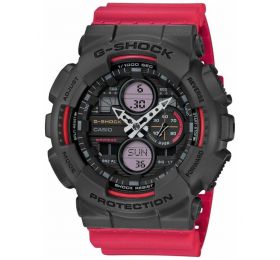 G-SHOK SERIES Противоударные, многофункциональные часы. Идеально подходят для занятия спортом. Имеют невероятную водонепроницаемость до 200 метров. Отлично послужат модным и стильным аксессуаром для современного человека. Ремешок и корпус сделан из полимерных материалов. Застежка и задняя крышка из нержавеющей стали. Прочное минеральное стекло надежно защищает часы от повреждений. Большие кнопки утоплены в корпус по две с каждой стороны, имеют ребристую текстуру для легкости управления. Стрелки с острыми наконечниками, которые точно попадают в деления. Это позволяет быстро определить время. Два цифровых дисплея показывают время в цифровом формате либо число, месяц, день недели и отсчет секунд, на выбор. Еще можно включать секундомер до 100 часов, таймер обратного отсчета до 24 часов, менять часовые пояса, пользоваться пятью будильниками. Подсветка светодиодная, автоматически активируется при повороте часов на себя или кнопкой. Элемента питания хватает от 2 до 5 лет. Размер 55 мм на 52 мм, толщина 17 мм. Оснащены вечным календарем. Часы можно заказать с другим ремешком и расцветкой циферблата. Для этого в строке поиска нужно ввести название модели без окончания, GA-140