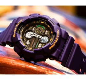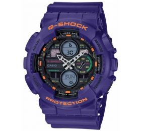 G-SHOK SERIES Противоударные, многофункциональные часы. Идеально подходят для занятия спортом. Имеют невероятную водонепроницаемость до 200 метров. Отлично послужат модным и стильным аксессуаром для современного человека. Ремешок и корпус сделан из полимерных материалов. Застежка и задняя крышка из нержавеющей стали. Прочное минеральное стекло надежно защищает часы от повреждений. Большие кнопки утоплены в корпус по две с каждой стороны, имеют ребристую текстуру для легкости управления. Стрелки с острыми наконечниками, которые точно попадают в деления. Это позволяет быстро определить время. Два цифровых дисплея показывают время в цифровом формате либо число, месяц, день недели и отсчет секунд, на выбор. Еще можно включать секундомер до 100 часов, таймер обратного отсчета до 24 часов, менять часовые пояса, пользоваться пятью будильниками. Подсветка светодиодная, автоматически активируется при повороте часов на себя или кнопкой. Элемента питания хватает от 2 до 5 лет. Размер 55 мм на 52 мм, толщина 17 мм. Оснащены вечным календарем. Часы можно заказать с другим ремешком и расцветкой циферблата. Для этого в строке поиска нужно ввести название модели без окончания, GA-140