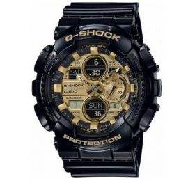 G-SHOK SERIES Противоударные, многофункциональные часы. Идеально подходят для занятия спортом. Имеют невероятную водонепроницаемость до 200 метров. Отлично послужат модным и стильным аксессуаром для современного человека. Ремешок и корпус сделан из полимерных материалов. Застежка и задняя крышка из нержавеющей стали. Прочное минеральное стекло надежно защищает часы от повреждений. Большие кнопки утоплены в корпус по две с каждой стороны, имеют ребристую текстуру для легкости управления. Стрелки с острыми наконечниками, которые точно попадают в деления. Это позволяет быстро определить время. Два цифровых дисплея показывают время в цифровом формате либо число, месяц, день недели и отсчет секунд, на выбор. Еще можно включать секундомер до 100 часов, таймер обратного отсчета до 24 часов, менять часовые пояса, пользоваться пятью будильниками. Подсветка светодиодная, автоматически активируется при повороте часов на себя или кнопкой. Элемента питания хватает от 2 до 5 лет. Размер 55 мм на 52 мм, толщина 17 мм. Оснащены вечным календарем. Часы можно заказать с другим ремешком и расцветкой циферблата. Для этого в строке поиска нужно ввести название модели без окончания, GA-140