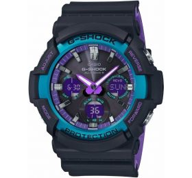 G-SHOK SERIES Противоударные, многофункциональные часы. Отлично послужат модным и стильным аксессуаром для современного человека. Зарядка накопительного аккумулятора происходит от солнечных лучей или любого источника света, аккумулятор не требует замены. Ремешок и корпус сделан из полимерных материалов. Застежка, черный безель с защитным покрытием, кнопки и задняя крышка, из нержавеющей стали. По бокам корпуса расположены традиционно четыре кнопки для включения функций и настройки. Прием радиосигнала из Европы, помогает после настройки время на местный часовой пояс, получать радиосигнал калибровки, гарантирующий, что они будут всегда показывать точное время. Прочное минеральное стекло надежно защищает часы от повреждений. Циферблат многослойный объемный с крупными стрелками в форме мечей и цифровыми дисплеями. На них отображается время в цифровом формате либо число, месяц, день недели и отсчет секунд на выбор. Еще можно включать секундомер на 1час, таймер обратного отсчета до 100 минут, менять часовые пояса, пользоваться пятью будильниками. Подсветка светодиодная, автоматически активируется при повороте часов на себя или кнопкой. Размер 55 мм на 52 мм, толщина 16 мм. Оснащены автоматическим вечным календарем. Водонепроницаемость 200 метров. Часы можно заказать с другим ремешком и расцветкой циферблата. Для этого в строке поиска нужно ввести название модели без окончания, GAW-100