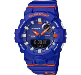 G-SHOCK SERIES Противоударные, многофункциональные часы. Идеальный аксессуар для активных людей чия жизнь не стоит на месте. А фитнес и мода стали неотъемлемой ее частью. С помощью Bluetooth вы можете подключить часы к смартфону и получить доступ к целому ряду полезных функций через приложение G-Shock Connected. Настройка времени, отслеживают места активности на карте, считают потраченные калории. Считывают ежедневную активность и приводят статистику, выводя ее на смартфон. В часах есть шагомер и трекер активности. Основная особенность трехосный датчик, который довольно хорошо отслеживает шаги, понимает когда вы бежите, а когда просто прогуливаетесь. Секундомер на 24 часа, с возможностью сохранения данных, таймер, пять будильников, мировое время, смена часовых поясов, функция поиска телефона, при нажатии кнопки на часах смартфон подает звуковой сигнал. Подсветка LED, автоматически активируется при повороте часов на себя или кнопкой. Циферблат объемный с цифровым дисплеем. На нем отображается время в цифровом формате либо число, месяц и отсчет секунд на выбор. Нажатием кнопок активируется на дисплей шагомер. Крупные белые стрелки, в форме мечей, с мощным светонакопительным покрытием. Стекло противоударное минеральное. Корпус и ремешок из полимера. Календарь автоматически настраивается по Bluetooth. Элемента питания хватает от 2 до 5 лет.Размер 54 мм на 48 мм, толщина 15 мм. Водонепроницаемость 200 метров. Часы можно заказать с другим ремешком и расцветкой циферблата. Для этого в строке поиска нужно ввести название модели без окончания, GBA-800