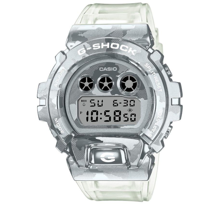 CASIO GM-6900SCM-1ER стильная новинка с особым характером. Эти часы могут покорить представителя мужского пола абсолютно любой возрастной категории. В чем их особенность? Всё просто - неповторимый дизайн, полупрозрачный гибкий и прочный ремешок, стальной принт лицевой стороны корпуса, и безупречный дизайн самого циферблата. В наборе к безупречному дизайну CASIO GM-6900SCM-1ER идёт и весьма полезный набор функций: