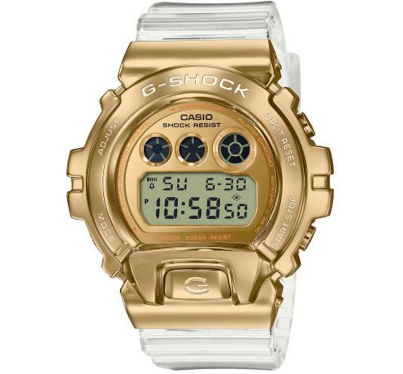 CASIO GM-6900SG-9ER стильная новинка с особым характером. Эти часы могут покорить представителя мужского пола абсолютно любой возрастной категории. В чем их особенность? Всё просто - неповторимый дизайн, полупрозрачный гибкий и прочный ремешок, яркое золотое покрытие корпуса, и безупречный дизайн самого циферблата. В наборе к безупречному дизайну CASIO GM-6900SG-9ER идёт и весьма полезный набор функций: