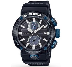 G-SHOK NEW GRAVITYMASTER SERIES Авиаторы с защитой от центробежной силы Земли. Противоударные, спортивные, многофункциональные часы. Отлично послужат модным и стильным аксессуаром для современного человека. Легко вписываются в современный городской стиль. Солнечная батарея, заряжаются от любого источника света. Есть функция радиоконтроля. При перелетах часы автоматически настраиваются на местный часовой пояс. По Bluetooth можно подключить часы к смартфону, получить доступ к целому ряду полезных функций и настроек, через приложение G-Shock Connected. Запись точек маршрута и просмотр их на карте по смартфону. Функция поиска телефона, настройка и управление функционалом. Корпус из углепластика, усилен карбоновыми волокнами, представляет собой монокок, в который сверху вставляется механизм. Обладает еще большей ударопрочной структурой. Дополнен титановыми элементами. Вес всего 72 грамма. Карбоновый ремешок с изнанкой из пластичного, мягкого, удобного полимера. Карбоновый безель. В корпус утоплены четыре кнопки для управления, настройки и подсветки. Утолщенное сапфировое стекло, не царапается вообще. Стрелки в форме мечей с люминесцентным покрытием. Два дополнительных дисплея показывают, дни недели либо включенные функции, такие как секундомер, таймер и будильник, второй дисплей показывает мировое время. Есть апертура даты на трех часах. Подсветка светодиодная. Размер 50 мм на 46 мм, толщина 17 мм. Имеют невероятную водонепроницаемость до 200 метров. . Часы можно заказать с другим ремешком и расцветкой циферблата. Для этого в строке поиска нужно ввести название модели без окончания, GWR-B1000