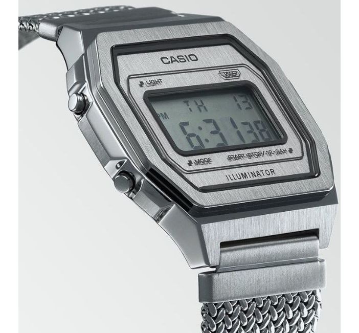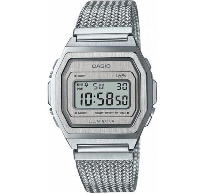 Casio Vintage Premium Стильные и элегантные, пользующиеся огромной популярностью уже много лет. Так полюбившиеся молодым людям во всем Мире, своей практичностью и надежностью. Часы пережили переиздание в 2020 году. И теперь изготавливаются полностью в металлическом корпусе из нержавеющей стали . Браслет приятный, миланское плетение. Сделан из нержавеющей стали, длинна регулируется. Стекло минеральное ударопрочное. Циферблат цифровой. Подсветка люминесцентная, высвечивает цифры неоновым свечением. Смена функций, настройка и подсветка осуществляется кнопками. Дополнительные функции включают в себя будильник, секундомер на 1 час и таймер обратного отсчета. Вечный календарь, после настройки всегда будет показывать точные данные. Размер 40 мм на 38 мм, толщина 7 мм. Батарейки хватает от 3 до 5 лет. Водонепроницаемость дождь, мелкие брызги, мытье рук.Часы можно заказать в другом цвете. Для этого в строке поиска нужно ввести название без окончания, A1000
