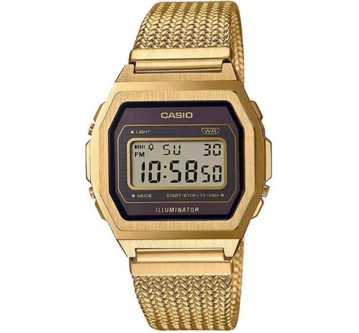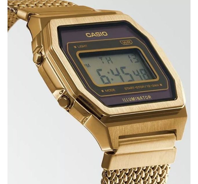Casio Vintage Premium Стильные и элегантные, пользующиеся огромной популярностью уже много лет. Так полюбившиеся молодым людям во всем Мире, своей практичностью и надежностью. Часы пережили переиздание в 2020 году. И теперь изготавливаются полностью в металлическом корпусе из нержавеющей стали с износоустойчивым PVD покрытием. Браслет приятный, миланское плетение. Сделан из нержавеющей стали, длинна регулируется. Стекло минеральное ударопрочное. Циферблат цифровой, декорированный перламутровой вставкой. Подсветка люминесцентная, высвечивает цифры неоновым свечением. Смена функций, настройка и подсветка осуществляется кнопками. Дополнительные функции включают в себя будильник, секундомер на 1 час и таймер обратного отсчета. Вечный календарь, после настройки всегда будет показывать точные данные. Размер 40 мм на 38 мм, толщина 7 мм. Батарейки хватает от 3 до 5 лет. Водонепроницаемость дождь, мелкие брызги, мытье рук. Часы можно заказать в другом цвете. Для этого в строке поиска нужно ввести название без окончания, A1000