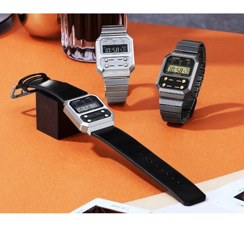 Casio Vintage. Стильные и элегантные, пользующиеся огромной популярностью уже много лет. Так полюбившиеся молодым людям во всем Мире, своей практичностью и надежностью. Переиздание первых часов с пластиковым корпусом. Корпус серебристого цвета сделан под игровой автомат. Стекло акриловое.. Подсветка светодиодная. Автокалендарь. Секундомер. Ежедневный будильник. Часы водостойкие. Часы можно заказать с другим ремешком и окраской циферблата. Для этого в строке поиска нужно ввести название модели без окончания, A100