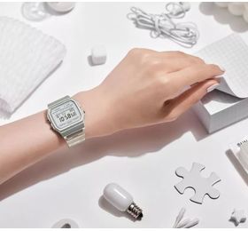Casio Vintage. Стильные и элегантные, пользующиеся огромной популярностью уже много лет. Так полюбившиеся молодым людям во всем Мире, своей практичностью и надежностью. Эпотажный дизайн этой модели, не оставит равнодушным никого. Вес всего 45г, что делает их практически невесомыми. Подсветка светодиодная. Помимо электронного отображения времени, даты и дня недели также есть будильник и секундомер. Батарейки хватает на 7 лет. Часы выдерживают мытье рук, дождь. Часы можно заказать в другом цвете. Для этого в строке поиска нужно ввести название без окончания, F-91
