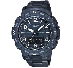 Представляем новую модель CASIO PRT-B50YT-1ER с титановым браслетом, из линейки PRO TREK. Благодаря своему привлекательному дизайну, эти часы могут быть использованы не только во время активного времяпровождения, но и в повседневных буднях. Легкий браслет, из противоаллергенного сплава титана устойчивого к коррозии, с покрытием IP Finish черного цвета — идеально сочетаются со стильным черным корпусом из качественного полимерного материала. Большие арабские цифры на многомерном циферблате позволяют легко и быстро считывать время, а металлические детали в сочетании создают качественный и элегантный вид. Металлическая задняя крышка прикреплена на винтах, с дополнительной внешней накладкой из полимерного материала. Большой вращающийся безель позволяет легко работать на открытом воздухе, даже в перчатках, и добавляет дикости этому дизайну. Прочное минеральное стекло. Кварцевый механизм, модуль 5601 - морозоустойчивый(10С/14F). Для избежания неприятных ситуации с окончанием службы элемента питания — присутствует индикатор уровня заряда батареи. Примерный срок службы батареи 2 года. Водостойкость 10 бар.