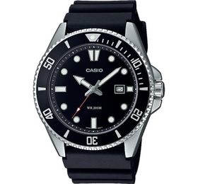 CASIO COLLECTION Стильные, спортивные, дайверские часы. Приятный цвет циферблата. Вращающийся безель. Противоударное минеральное стекло. Корпус из нержавеющей стали. Браслет полимерный. Коронка на резьбе, настраивает в первом положении дату, во втором время. Водонепроницаемость 200 метров. Часы можно заказать с другой окраской циферблата. Для этого в строке поиска нужно ввести название модели без окончания, MDV-107