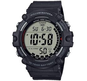 CASIO AE-1500WH-1AVEF в легком круглом полимерном корпусе будут идеальным выбором на каждый день, за невысокую цену. Электронный циферблат часов легко читаемый благодаря четкому контрасту и больших цифр. Для подсветки дисплея в темное время суток используется специальный светодиод. Акриловое стекло надежно защищает циферблат, по сколько оно очень вынослива к ударам и давлению. Ремешок из прочного и гибкого полимерного материала, с классической пряжкой. Присутствует такой набор функций: секундомер с точностью 1/100 сек и возможными пределами измерения до 24 часа; таймер обратного отсчета с пределами установки времени от 1 мин до 24 часа, с функцией автоматического повтора отсчета времени; 5 ежедневных будильников/повтор звукового сигнала будильника/ежечасный сигнал; автоматический календарь после правильной настройки будет всегда показывать точное число; отображение актуального цифрового времени в удобном вам 12-часовом или 24-часовом формате. 100-метровая водонепроницаемость обеспечит защиту во время плаванья с маской и трубкой. Батарейка с продолжительным сроком службы обеспечит питание часов до 10 лет. CASIO AE-1500WH-1AVEF это идеальное сочетание цена-качество, часы сохранят бережно ваше время и ваши нервы.