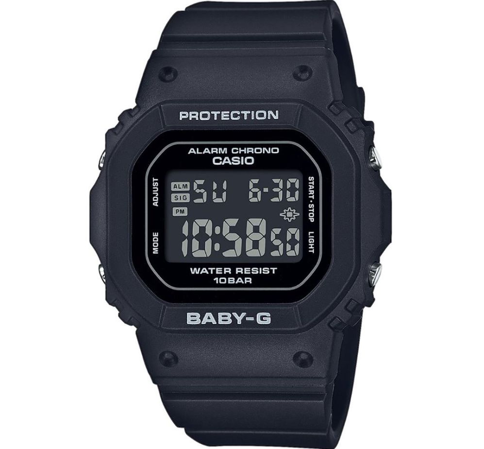 G-SHOСK SERIES Коллекция спортивных женских часов CASIO. Уменьшена версия стандартных моделей. Противоударные, многофункциональные, компактные часы. Идеально подойдут девушкам, которые идут в ногу со временем, чья жизнь не стоит на месте, а мода и стиль стали ее неотъемлемой частью. Ремешок и корпус из полимерных материалов. Застёжка и задняя крышка из нержавеющей стали. Прочное минеральное стекло надежно защищает часы от повреждений. Кнопки утоплены в корпус по две с каждой стороны. Подсветка светодиодная. Цифровой циферблат показывает время в цифровом формате число, месяц, день недели и отсчет секунд. Еще можно включать секундомер, таймер обратного отсчета, воспользоваться пятью будильниками. Подсветка светодиодная, активируется кнопкой. Элемента питания хватает от 2 до 5 лет. Оснащены вечным календарем. Обладают невероятной водонепроницаемостью до 100 метров. Часы можно заказать с другим ремешком и окраской циферблата. Для этого в строке поиска нужно ввести название модели без окончания, BGD-565