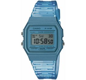 CASIO F-91WS-2EF это идеальные часы для легкого летнего настроения. Голубой цвет корпуса и ремешка вдохновляет, подсознательно стимулируя области отвечающие за хорошее настроение и вдохновение. Полимерный корпус исполненный в любимом винтажном дизайне. Полупрозрачный полимерный ремешок создает ассоциацию с небом и невесомостью, при это он довольно прочный и эластичный. Стекло в данных часах акриловое, устойчивое к ударам, и легко полируется в случае возникновения нежелательных царапин. Циферблат освещается только боковой микро-подсветкой. Присутствуют такие функции: секундомер (до 60 мин); 1 активный ежедневный будильник; полностью автоматический календарь; отображение актуального времени в 12/24- часовом формате. Кварцевый механизм питается от батареи с примерным сроком службы - 7 лет. Водостойкость ISO 2281 защищает механизм только от небольших брызг. Размеры часов 38,2мм x 33,20мм x 8,5мм, и вес всего лишь 21 гр.