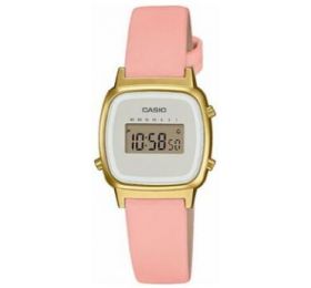 Casio Women’s Vintage Mini Отличный подарок всем любительницам компактных женских часов. Элегантные, пользующиеся огромной популярностью во всем Мире. Так полюбившиеся своим утонченным внешним видом, практичностью и надежностью. Золотистые часы со светлым циферблатом в форме подушки и цифровым дисплеем. Корпус изготовлен из полимера с износоустойчивым покрытием. Ремешок из натуральной кожи. Застежка классическая пряжка. Стекло из акрила, в силу своей эластичности оно устойчиво к ударам. По бокам три кнопки для настройки и управления функциями. Подсветки нет. Есть вечный календарь, после настройки всегда отображает точную дату. Будильник. Секундомер до 1-го часа. Таймер до 30 минут. Батарейки хватает от 2 до 5 лет. Механизм надежный, японский. Гарантия 2 года. Часы можно заказать с другим ремешком и расцветкой циферблата. Для этого в строке поиска нужно ввести название модели без окончания, LA670