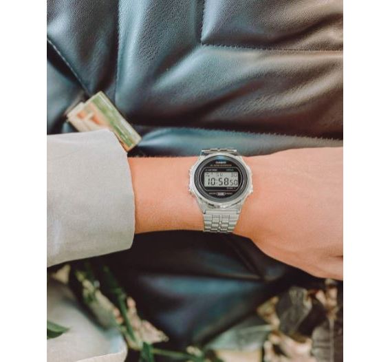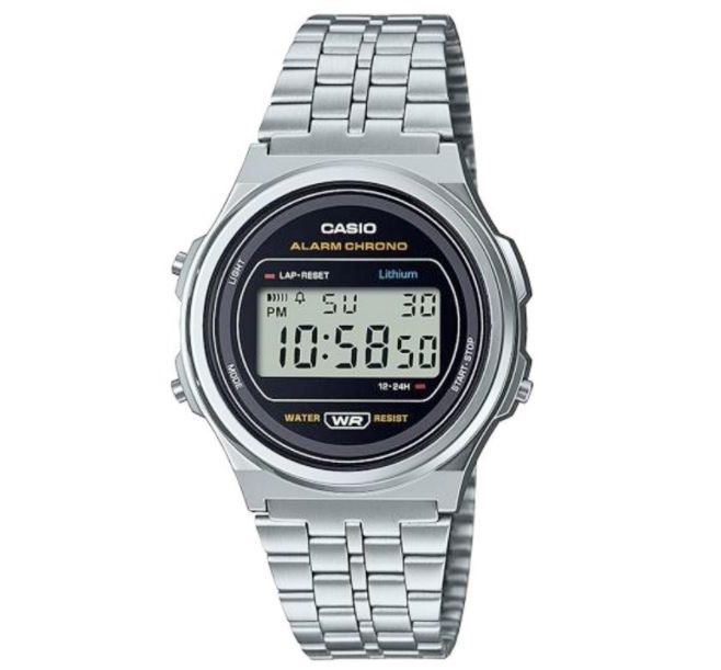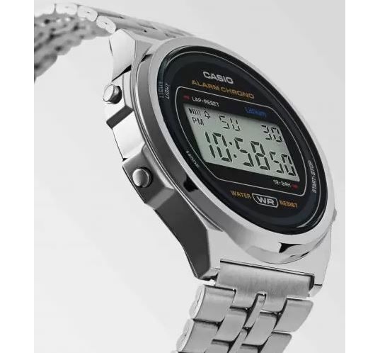 CASIO A171WE-1AEF Vintsge. Стильный, эпотажный дизайн этой модели, не оставит равнодушным никого. Очень компактные, диаметр по ширине всего 38мм, а вес 45г, что делает их практически невесомыми. Плавающая застежка. Подсветка. Помимо электронного отображения времени, даты и дня недели также есть будильник и секундомер. Батарейки должно хватить на 7 лет. Часы выдерживают мытье рук, дождь. Часы можно заказать в другом цвете. Для этого в строке поиска нужно ввести название без окончания, A171