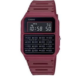 CA-53WF-4BEF это современные часы с уникальным ретро дизайном, входящий в коллекцию Vintage. Мини-калькулятор от CASIO может похвастаться не только хорошим набором функций, но также высоким удобством ношений на запястье, и стильным цветовым исполнением. Полимерный ремешок и корпус темно-бордового цвета, черный дисплей и черная зона калькулятора — это просто идеальное решение цветовой синхронизации, стильно, и всегда свежо. Акриловое стекло надежно защищает циферблат от случайных ударов, и его так-же возможно легко отполировать в случае возникновения нежелательных царапин. Кварцевый механизм питается от батареи с продолжительным сроком службы - 5 лет. Точность хода +/-15 сек в месяц. Водостойкость WR (допускаются небольшие брызги). Размеры часов (ш/в/т) 34.4 x 43.2 x 8.2 мм, вес 25гр.